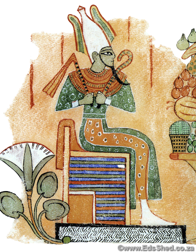OSIRIS God of the underworld, guardian of the dead, brother & husband of the mother God ISIS who are children of Geb & Nut and the parents of Horus. (Gotta love this stuff).