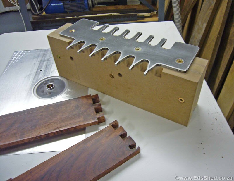I copied the design from examples on the web and used CAD to create a solution to suit my cutters and router. The final layout was laser cut out of 4mm mild steel.